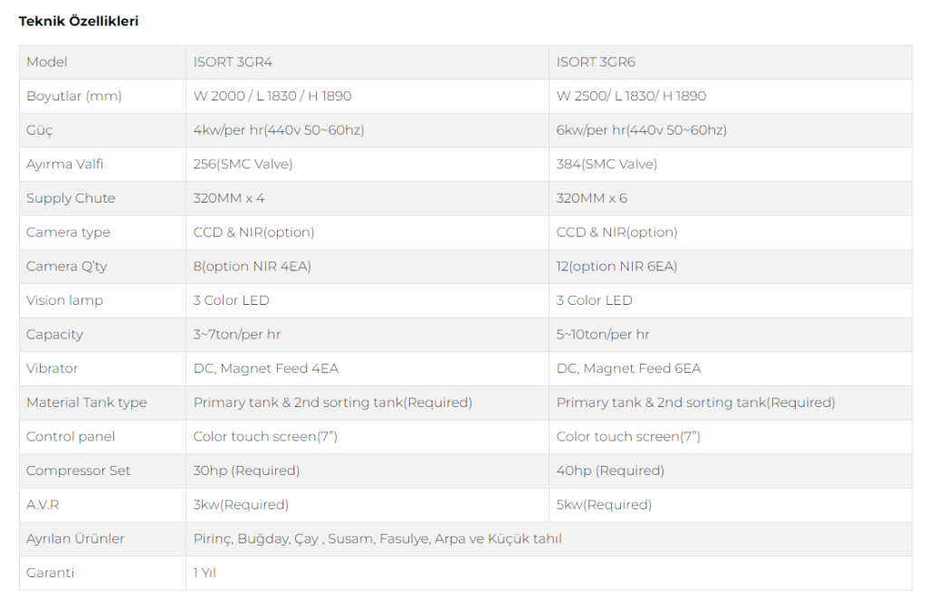 Renk Ayırma Makinesi Gıdaların (Pirinç, Kuru Fasulye, Yeşil çay, Siyah çay, Kuru meyve, Kestane, Susam, Kinoa, Darı gibi) tam renkli kamerayla, renklerine göre ayrılmasını sağlar. Birçok farklı alanda kullanılabilir ve yüksek derecede verimli çalışır.